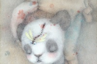 天幕部分地放弃和改造了从前的行为准则,心理的开放和行为的自由同时出现在她的生活中,恰逢其时,艺术成为出口和通道。忽如一夜春风来,她童年漠视甚至反感的东西频频展现自己的画面上,别无他物,犹如一种补偿。天幕的作品看起来太完美,似乎完美得超越了年龄和代际。然而,“完美”并不存在,所谓“完美”,都是有漏洞的。天幕笔下“完美”的漏洞,就在于那个世界本身就是虚假的,是反现实的,一如《楚门世界》中的孤岛。关于新的系列作品,天幕说她想在画的过程中理清楚自己的头绪,在画过之后能明白自己绘画的逻辑关系,在放松的状态下,将一些感兴趣的小细节放到画面里,让它生长出一张画。而“不萌”和“邪恶”进入了天幕的画面里,也预示着她开始对负面情绪的接受,勇敢的、全方位的审视这个世界的全部,面对、接受甚至欣赏。