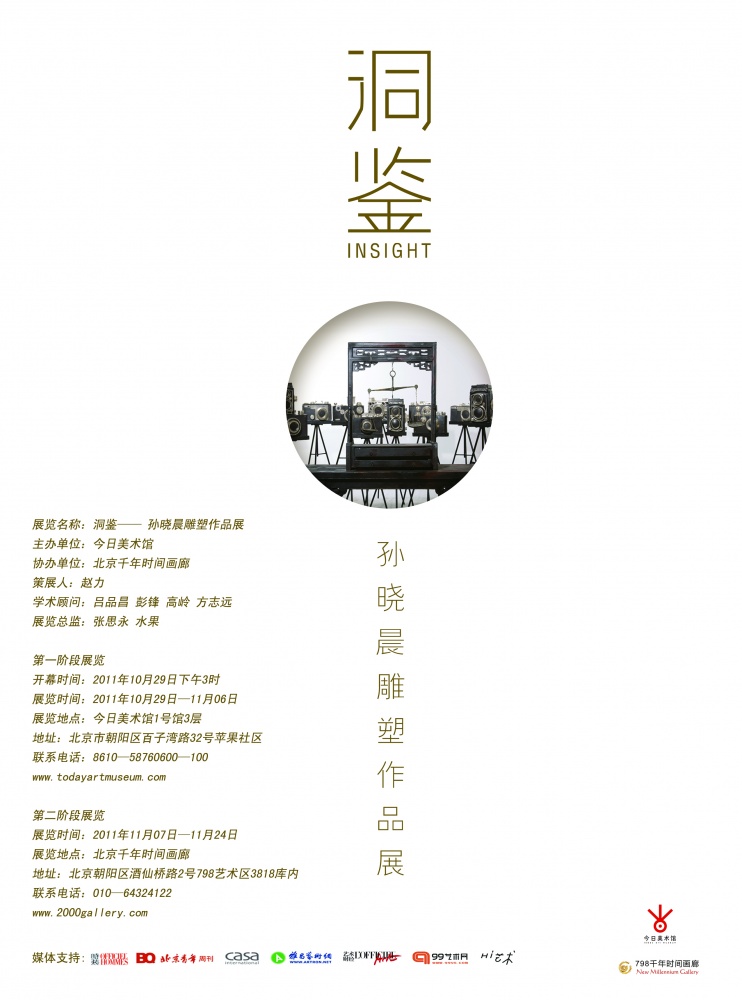 孙晓晨为我们设置了这样的迷局,让我们在看似真实其实却荒诞无比的场景作品中,去激发对逝去之物的好奇,更去反思从我们身后喷涌而过的未来和当下,因为那些成排拱列的相机总是不断地向我们释放出这样的信息:追问包括历史在内的一切事物的真相,是每个人的权力。而历史的真相究竟是什么?那些原有的机械属性和记录功能被抽离和销蚀的瓷质相机,已经告诉我们试图去揭示历史真相的徒然。艺术家要让相机以视觉作品的方式存在,而只有相机以视觉作品的方式出现,整个作品才显得异常的吊诡——一大片从来就没有而且也无法记录历史事件和景象的瓷制相机,与那些代表着传统社会权力、欲望、信仰和公平的器物同处一室,被艺术家赋予了记录和鉴证历史上人的精神意识、社会的法制制度与宗教信仰的功能!从更深得层面上加以阐释,孙晓晨的这种场景化的“互视”结构更类似于中国古代诗文中的“互文”的修辞方法,即所谓的“参互成文,含而见文”。而现成品的挪用在体现其与生活之间原有关系的同时,突显了艺术家选择的意义和动机,更有意思的是它们还与“相机”之间形成复杂而难以剥离的关联,产生某种难辨赝伪的真相迷失, 从而激发了观者的互动性和现场感。事实上正如孙晓晨以“洞鉴”为名,艺术家以今溯古,冷静剖析着的是人类自身的陋习劣根和顽冥不化。