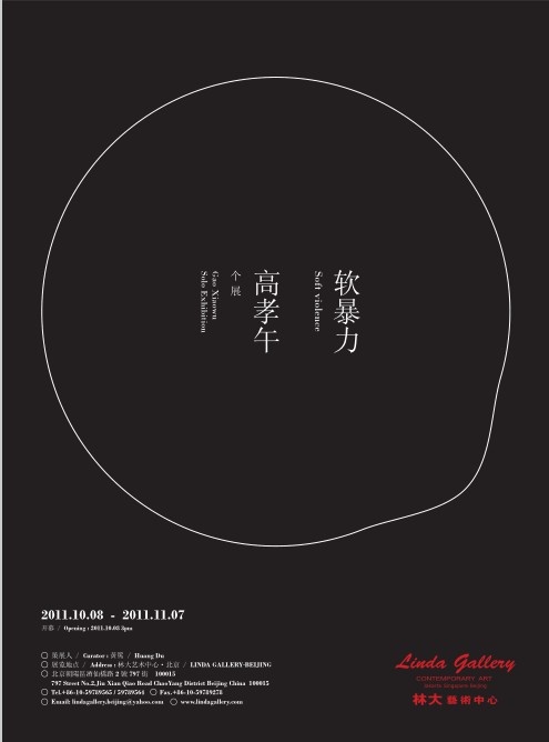 高孝午新作个展《软暴力》将于2011年10月8日于北京798林大艺术中心举办。该展由著名策展人黄笃策划,展出作者自2008年来的雕塑新作,它们是《标准时代》、《我们这一代》、《城市梦想》等系列作品之后的“课题性”作品,与其之前的系列作品相比,新作品在艺术观念和形式上有了新的转型,更趋向于多元化与装置化。雕塑家的艺术视点从物态虚拟和形式美学转向对社会现象、人文环境的思考,即对今天城市化发展中滋生的诸多问题的关注和分析——常常视而不见的事物。于是,他把视觉图像、语言方式和媒体话语理解成一种软暴力。那么,什么是软暴力呢?软暴力是一种和进攻性、强制性暴力之外的暴力,它表现为一种隐性的特征,具体说是一种以柔和的、劝诫的、安慰的姿态出现的软暴力,是一种与图像和信息相关可视的软性暴力。高孝午这样谈及艺术在当代社会中的意义“艺术应该具有一个提醒的功能,就像一个警示牌。”而他这次以“软暴力”为主题的个展生动地再现了人们对习以为常却不应被忽视的一些问题的思考,既让人能感受到一种直接的伤害的暴力,还能体验到一种悄无声息的影响人生活的软暴力。艺术家用隐喻而抽象的艺术语言表达了对现实世界问题的焦虑和批判,具体通过夸张而变形的雕塑语言呈现出来。汽车、房屋、儿童、消费、信息、信仰等组成的城市表象都被艺术家以“软暴力”视角加以主观的表现和分析。因此,这次艺术家高孝午全新呈现的雕塑个展《软暴力》,既能让观众感到软性的诙谐与幽默,又能使观众从中获得严肃的启示与反思。