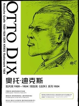 2012年11月20日至12月20日,歌德学院(中国)将在南京艺术学院新美术馆举办德国对外文化关系学院的展览“奥托∙迪克斯:批判画1920-1924 | 铜板画《战争》系列1924”。本次展览展出迪克斯的铜版画和石版画作品共计86幅。南京之后,该展览还将相继在上海、重庆、广州、北京等地展出。本次展览的焦点是铜版组画《战争》,它在迪克斯的全部作品中占有特殊地位。一战期间,迪克斯作为一名机枪手应征入伍,这一经历伴随了他的一生,也深深影响了他的创作。仅在1915年至1918年间,他就在比利时、法国和俄罗斯的前线完成画作600多幅。这些就地绘成的战地记录,艺术价值上乘,它们和画家本人的战地回忆一道,构成了《战争》系列的基础。1924年,这组作品由卡尔·尼伦多夫(Karl Nierendorf)在柏林出版发行。这本50页的集子经常被用来和戈雅的《战争的灾难》相提并论,它不仅逼真而震撼地再现了一战当中炮火横飞的残酷阵地战,也以一种可怕的方式撕下了战争惨无人道的面具。迪克斯曾经坦言,他不期待通过画作来改变人们,他在乎的是真相。除去战争,迪克斯展示的真相还包括战后的边缘群体,比如战争伤残人士和妓女。“我喜欢坚硬的形状和枯燥的陈述。对我而言,轮廓很重要,它将物体残酷地、硬生生地置入了空间”,迪克斯如是评价他那些出自上世纪20年代褒贬不一的画作。