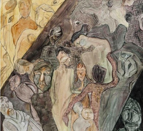 朦胧意识、故事架构、平面构图,用明亮或灰暗的色调营造出独特的梦幻氛围,把暗喻、拟人、比喻等“新闻手法”在绘画中艺术再造,为画作注入了思想、情感、哲理。为了更直观的表达自己心中的感受,潘士强给这些画取了一个个颇有哲学意味的名字:《活出心中的风景》、《放弃是另外一种追求》、《毁灭之后是重生》、《追寻生命的灵魂之旅》、《孤独是内心沉没的船》……
