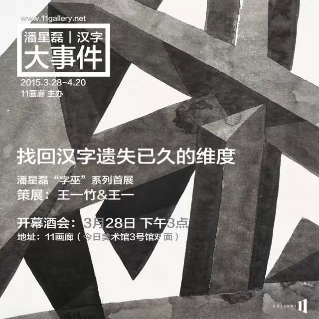 毕业于中央美术学院雕塑系的潘星磊,3月28日起在北京11画廊推出2015个展【汉字大事件】,他的纸上作品〈字巫〉系列将在展览中首次公开展出,展览将持续到4月20日。