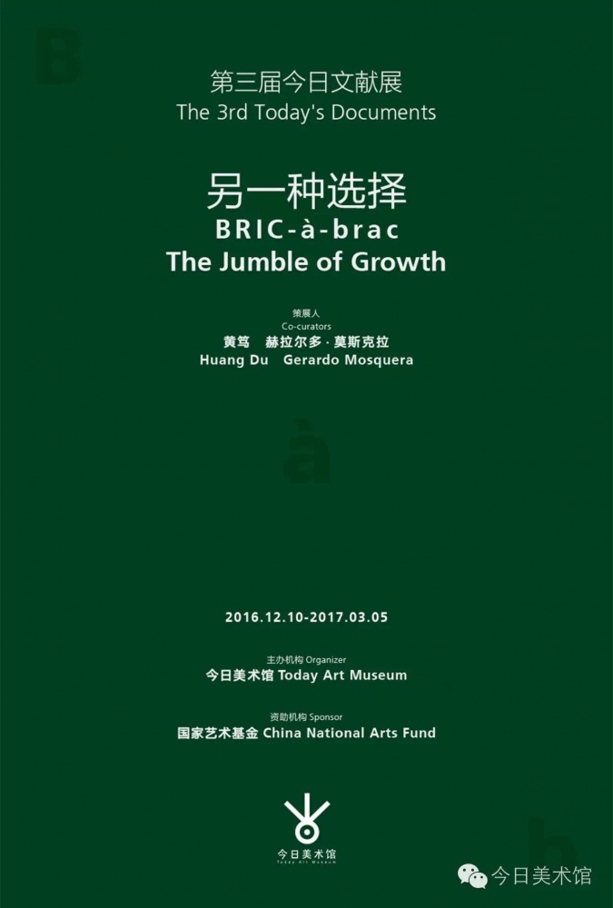 第三届今日文献展将于2016年12月10日在1号馆和3号馆展出,本届今日文献展以“BRIC-à-brac”为主题(中文题目为“另一种选择”),将邀请来自中国、墨西哥、西班牙、巴西,印度,俄罗斯,南非,韩国等不同国家/地区的50位/组艺术家,探讨不同文化语境和发展形态下的艺术表现特征以及混合活力。