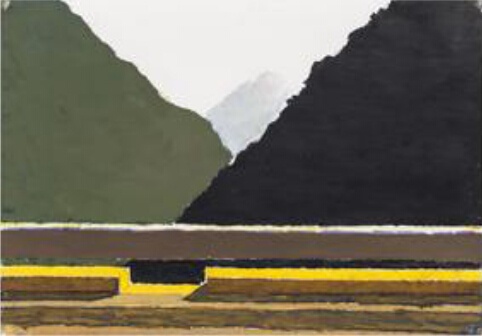 郭海强每天骑自行车所抵达的目的地并非事先确定,而是根据自己的体力条件来决定。他并没有把自己封闭在画室里,去依靠记忆力或是摆在眼前的图像来进行图像创作,而是把户外当做自己的工作室。主题的选择是完全通过身体的位移和努力,而他所体验的环境被还原为简单但却复合的色块。因为随身携带的材料有限,作品特定且统一的尺幅要求艺术家创作出简明但却复杂的图像,从而再现这一“景象”。所获得的图像不仅体现了艺术家对“自然”环境的认知,也折射出抵达某个地点的身体体验。