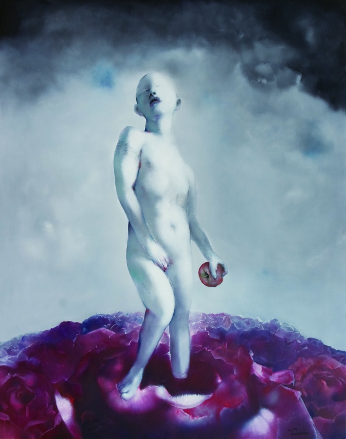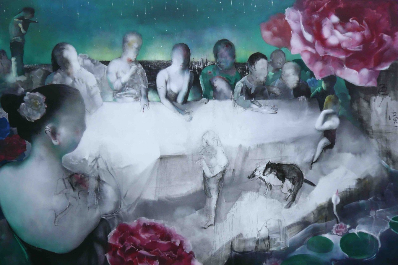 云的梦境语言与玫瑰般的符号和溃烂的城市主体,叠置倒影,成为花园倒影中的社会思考与精神深度批判。罗发辉将仙境与溃烂、悬空与漂移、虚幻与梦境的社会碎片和精神梦境的绘画语言叠置组合,构筑了人性与社会交响般的立体空中花园。