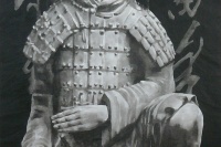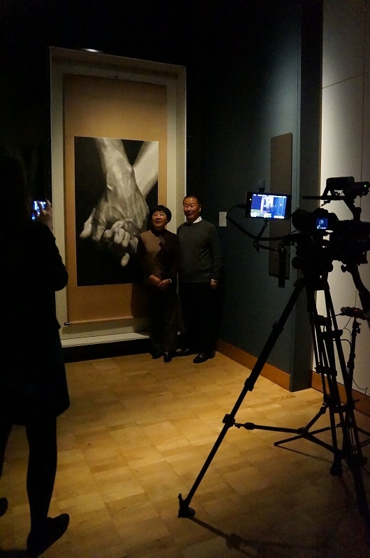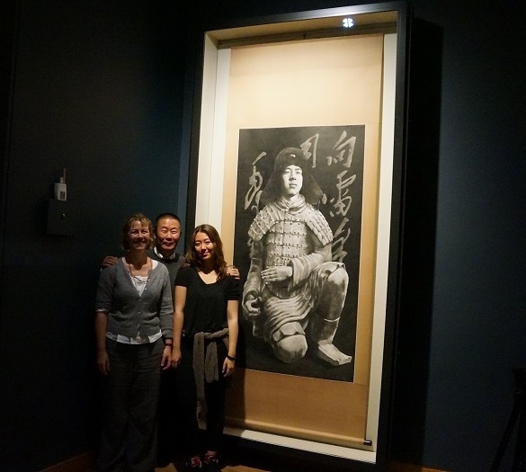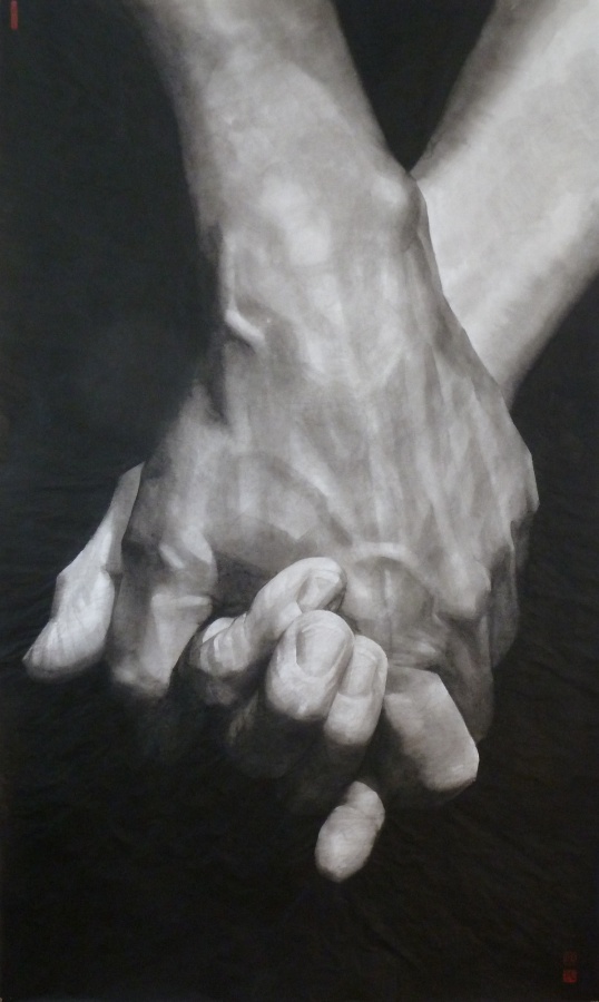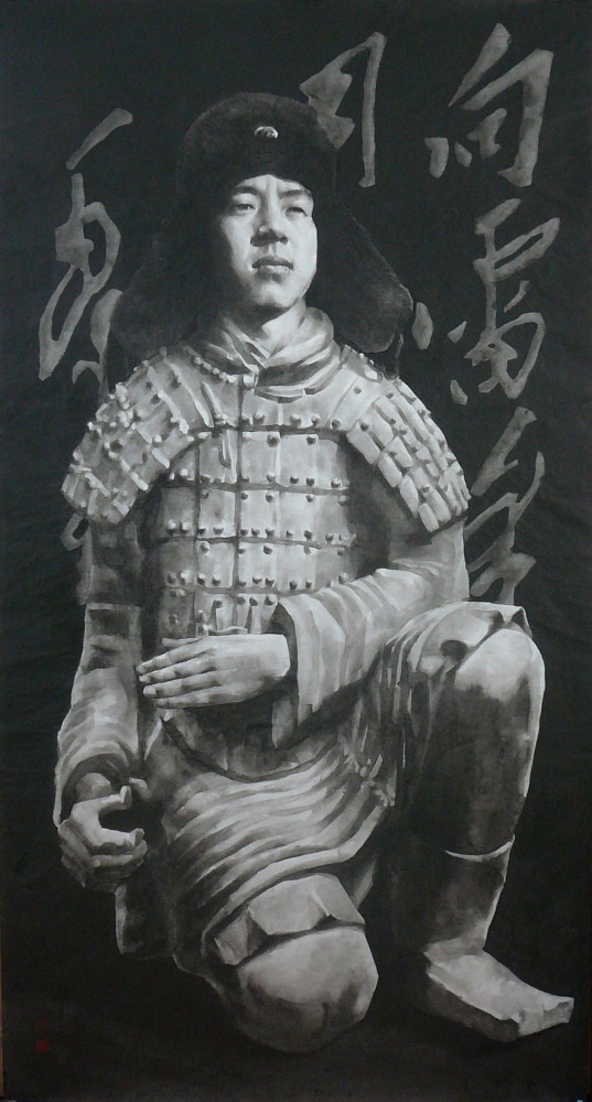 曲磊磊为著名旅英中国当代艺术家,星星画展创始人之一。这次展出的两幅画,属于大英博物馆永久收藏,均为水墨宣纸,6尺整张立轴。《雷锋》一画是他创作的《帝国》系列之一幅,以超现实主义手法,将雷锋和秦陵兵马俑合而为一,在两千年的历史契合中,探讨人的命运,生命的价值,和人性的尊严;《旅程》一画,是他的《面对未来》系列中的一幅,以手为媒介,表现当今世界不同文化和族群间的共同理想和诉求,走出中国,走向世界,显示出磅礴正气。