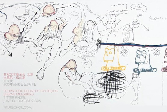林冠艺术基金会在北京的展览“苦天使”,关注艺术家的绘画、色彩和故事,展出梅尔高1999年以来的8幅大尺寸油画。正如展览名字“苦天使”所意,这一系列的作品是关于生命和它阴暗面的对比。在梅尔高的绘画中,清晰的黑色轮廓,色彩强烈明亮的具象图案,与艺术家自己的话语和文字,一同构成了他绘画的大场面中清晰可辨、高度个人化的表现主义风格。展出的绘画作品可以被看作是艺术家的视觉日记,内容大多围绕着艺术、男子气概、性、毒品和身份。