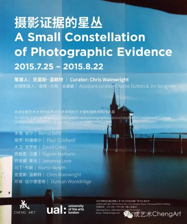 由成艺术邀请的国际著名艺术家及策展人克里斯·温赖特( Chris Wainwright)策划的展览“摄影证据的星丛”将于7月25日在成艺术开幕,展览将展出八位来自伦敦艺术大学坎伯韦尔艺术学院的职业艺术家和摄影师的摄影作品,展期持续到8月22日。