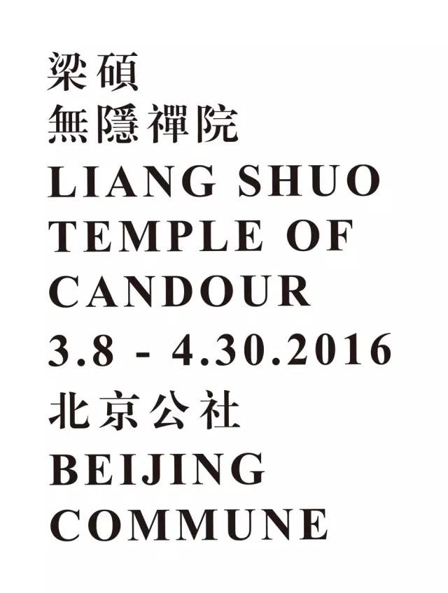 北京公社荣幸地宣布,我们将于2016年3月8日开启新的展览“无隐禅院”。这是艺术家梁硕在北京公社的第一次个展,展览将持续到2015年4月30日。