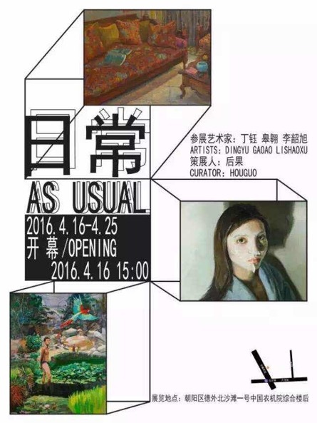 北京时间,4月16日下午三时,"日常"联展在北京朝阳区德外北沙滩1号综合楼展厅开幕,来自中央美术学院的三位青年艺术家展出了他们近期的创作。