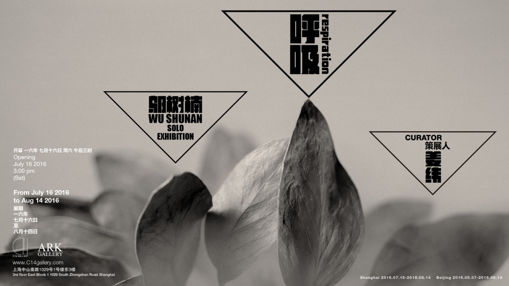 上海 — C14画廊荣幸推出邬树楠的个展《呼吸》,呈现艺术家最新系列作品。姜纬先生担任总策展人,相应画册已推出,由靳宏伟先生出品,中国摄影出版社出版。展览为C14画廊与CIPA(北京)画廊合办的交换巡回展览,此次上海展览ARK Gallery协办,旨在促进京沪两地及上海画廊间的艺术交流与合作。开幕酒会于2016年7月16日(周六)下午3:00-6:00在中山南路1029号1号楼东3楼举办,策展人姜纬和艺术家邬树楠莅临,欢迎各位光临!