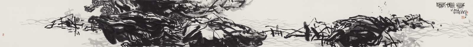 最为重要的是,本展览最终所呈现的当代艺术家潘公凯的“新笔墨”作品,形式精简而现代,格调高雅且意远,一笔一墨均呈现出艺术家丰沛的创作情感与高远的人格理想,无疑是是在全新的中西“间距”的时代语境下生成的中国当代本土艺术,其继承了正统的中国画文脉精髓,坚守鲜明的民族艺术主张,具有丰厚的传统文化底蕴和内涵,同时又在形式语言上充分借鉴和观照了西方当代艺术,并进行了合理的拓展创新,融入了当代文化思考与价值主张,是具有高度自觉性、独立性、原创性的东方智慧结晶,因此无论是形式语言还是文化内涵均可谓是当今世界文化发展进程中的全新建构,具有丰富的未来学价值。我也希望通过这种新的东方艺术形式能够为解决当下世界文化所面临的问题和困境提供一种“间距”和参照的可能,更想藉此大胆窥视与设想全世界的未来。