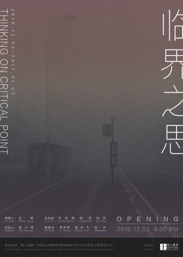 陌上画廊很荣幸地宣布,我们将于2016年12月03日呈现群展《临界之思》,主题围绕绘画中现实感与精神、观念、形式的多重临界而展开,由青年策展人王将主持策划,展览将持续至2017年1月03日。