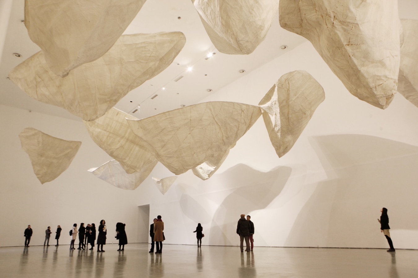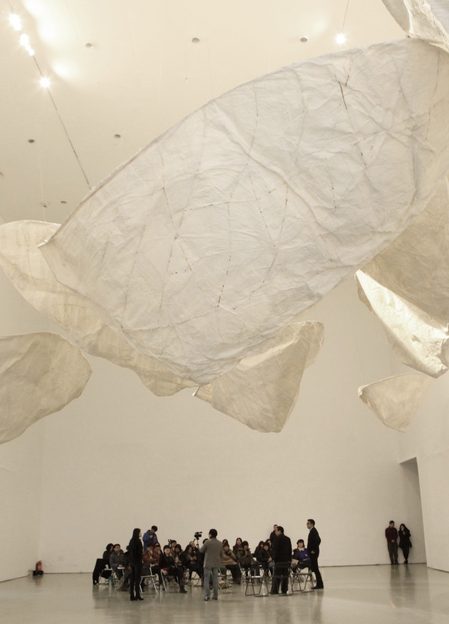 2016年1月30日下午二点整由今日美术馆主办的展览《异置》——汪一舟个展在今日美术馆1号馆2层圆满召开新闻发布会。这是艺术家汪一舟首次大型个人装置展。什么是异置?它是指艺术家不仅在物理空间上颠倒了正常的视觉秩序, 而且在观念上表现出改变物态的企图,即以柔软的宣纸作为媒介,将之转变成倒悬的三维山水。从而形成了展览的 “异置”形态。