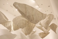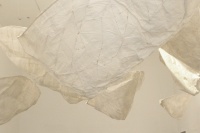 汪一舟,在深受中国哲学自然观的影响下,他以自己独特的形式来表达自然界里磅礴的山,浩淼的水,他放弃了一般水墨所侧重的的小情小趣,而选择了做减法的方式来抽离自然界感官物质,以简练、单纯的处理方法来展现一场更加人文的、更加精神的中国山水。艺术家以传统宣纸为表现媒介,并将其转化为三维形态,同时采用观念艺术介入空间的方法,使物质性宣纸得以自然展开,又以钢筋为山的结构,再以宣纸包裹其外,形成一种雕塑式的山水。这是工业性材料与传统手工材料的结合,从而使物质相互渗透与锈蚀。这种物质相互依存的关系,也无疑折射传统与当代之间纠缠的文化问题。