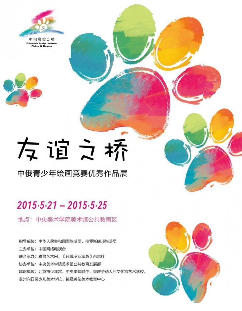 5月21日,由中国网络电视台主办,雅昌艺术网、《环俄罗斯旅游》杂志社承办,中央美术学院美术馆公共教育与发展部协办的 “友谊之桥”中俄青少年绘画大赛优秀作品展在中央美术学院美术馆开幕。此次大赛还特别邀请到了中国青少年美术教育专家杨景芝、清华大学美术学院教授申伟、人民教育出版社美术室主任编辑林荣桓、北京市少年宫美术部部长纪东作为评委,进行奖项的评审工作。