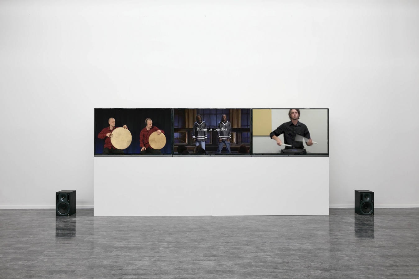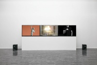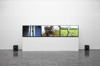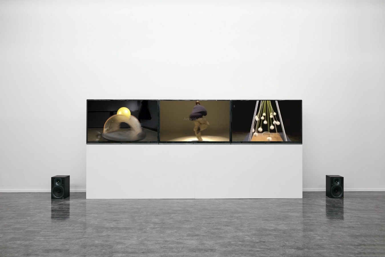 是次展览也会展出关小近年的三屏视像作品——《行动》(2014)。作品通过三个并排的荧光幕,有节奏地展示一系列从网上搜集得来的视像素材,包括家庭影片、广告片段和推广短片等,展现声音、影像与文字之间既开放又流动的关系。关小谈到这个作品:「于我来说,节奏等于感官的所有交集点,节奏帮助我了解事物之间的关系。它容许我尝试去转移行为,去看、去听、去想,自由地在不同的互动之间建构关连。」