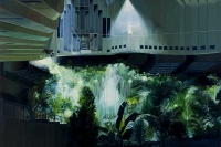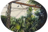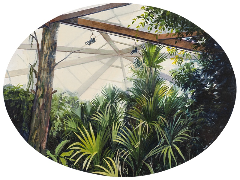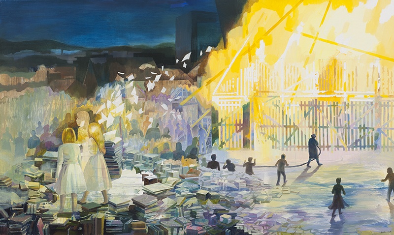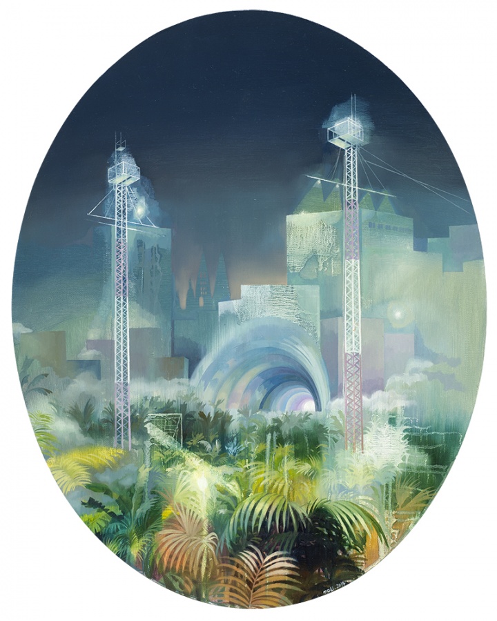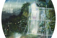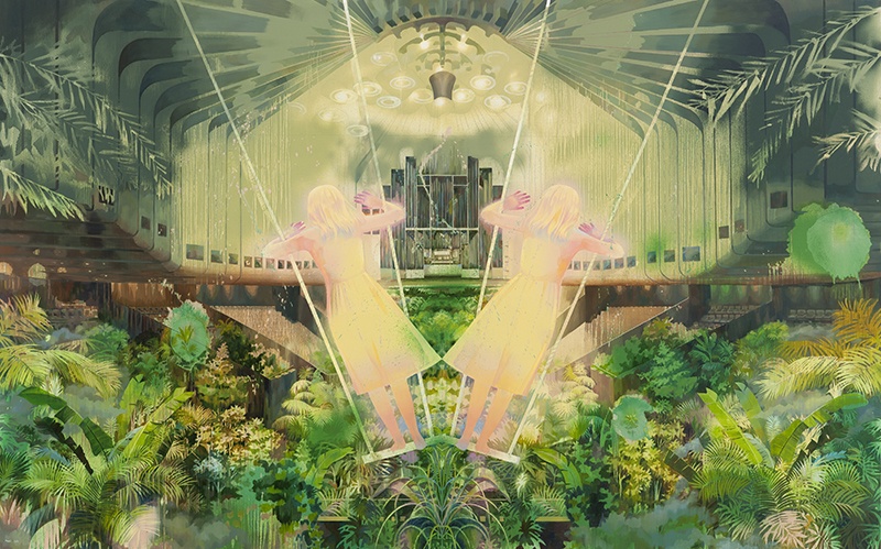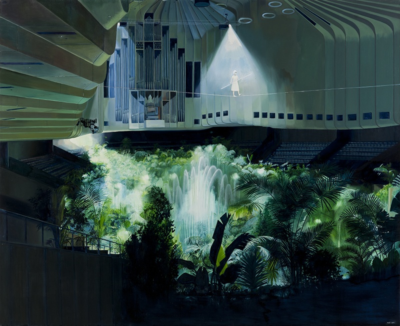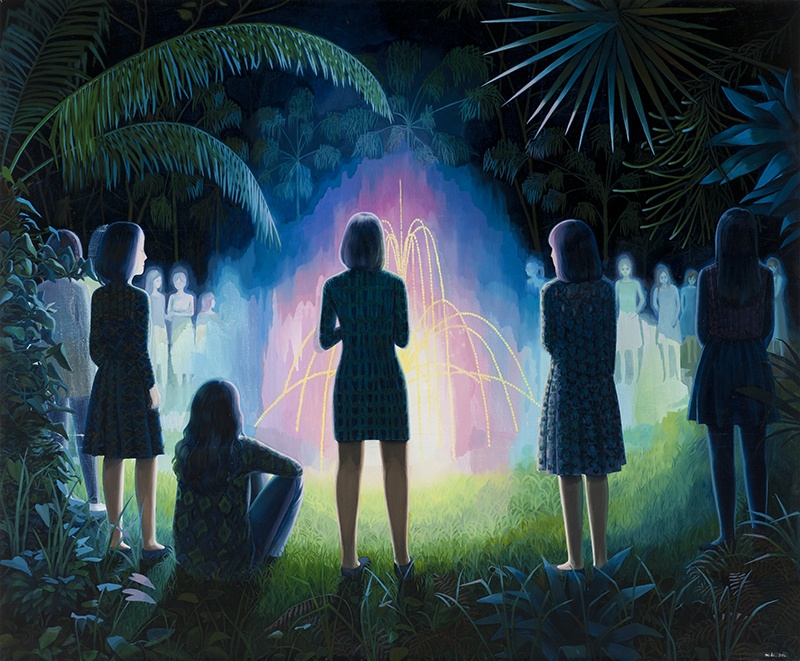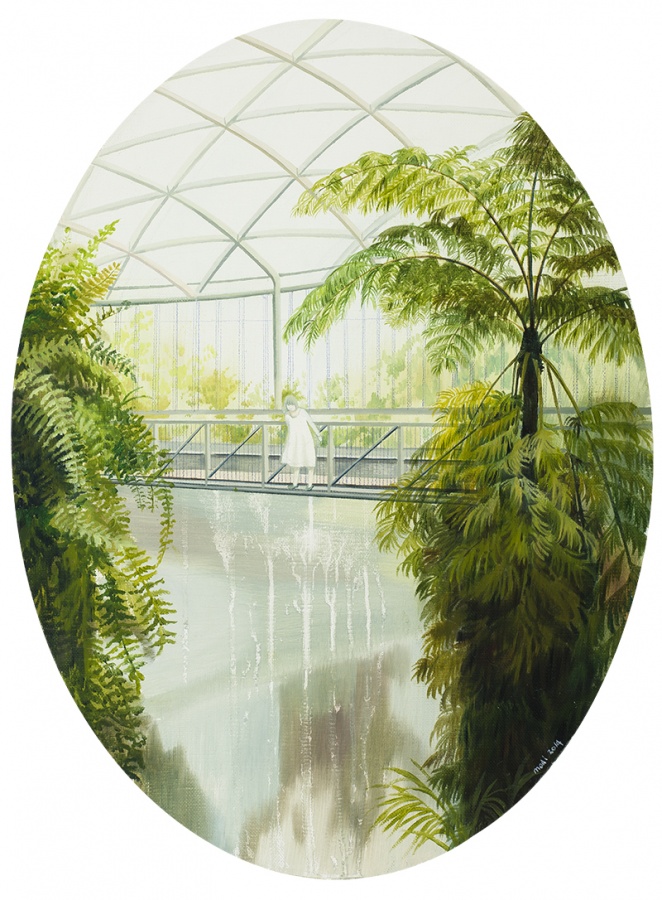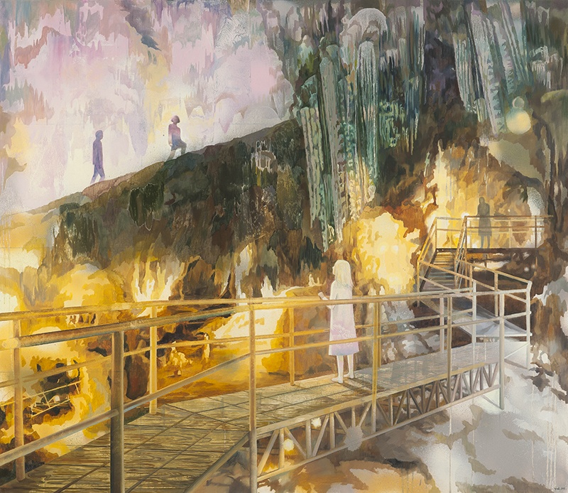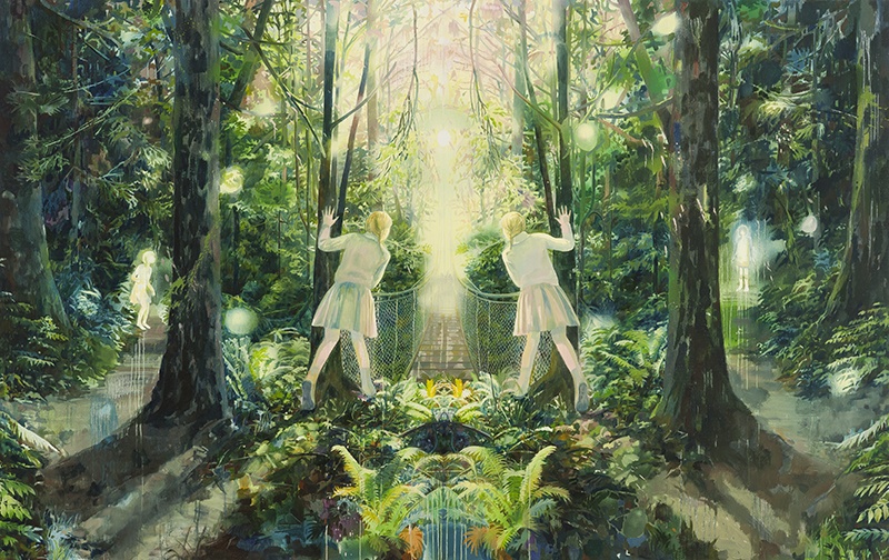 展览名为梦的入口,来源于我的一张本应该在2012年展览就该完成的作品。在这张作品里,我感觉就要打开一个异常绚丽的入口,快要接近某种理想状态了。但事实上,这张画被我修修改改历时一年之久,算是一场恶战。现在看来,这张画的状态就像我漫长的迷茫期,既代表了一个过程的完结,也象征着新的开始。我曾把创作当作一条河流,而我每天就在河里捡拾不同的东西。梦是蚊帐做成的网,可以帮我囊括更多未知的事物,但有很长时间,我连梦都空无一物。整月整月地画不出画,极大的挫败感由此而来。最难过的就是坐在一幅画前,久久不知该如何动笔。拼命地否定自己,却不知道如何构建新的东西。因此,有一段时间,我每天把自己感兴趣的事物画下来,作为自我安慰的方式。描绘那些幻想中的银河列车和斑驳阴影让我找回创作的初衷。我想记录这一切,正如Simon Schama所说:“艺术最深层次的驱策力就是要捕获转瞬即逝的视觉对象并传递知觉感受:即兴高采烈、恐惧颤栗、沉思平静、强烈欲求、哀婉悲怆等等,就是我们在生活中频繁经历的各式情感,是当我们受到打击而震惊的神经被常规惯例、时间和距离所麻木并进而遮蔽所有记忆前的诸多体验。这种对攫取瞬间体验的渴望是一种不易获得的渴望。”