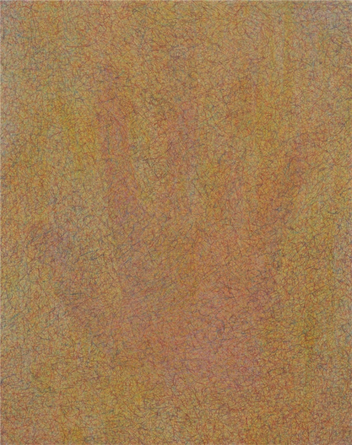 尽管,在周全的坦培拉作品中所有的形象孤立在画面的中央位置,并被像杂草一样的“有序痕迹”覆盖和遮蔽,但悖论的是越是被蓄意遮挡的东西却越是在主观意识中列于首位,或者说绘画在某种程度上说就是一种靠技术复制形象的渴望。