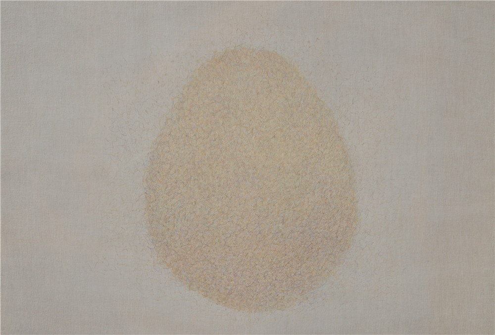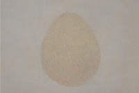 这种对“隐晦”的留恋在周全的创作经验中并非偶然,它的来源一方面是性格使然,另一方面则难以逃脱美国画家怀斯对其的影响,在当代艺术的范畴里,怀斯并不具备一个前卫艺术家的特质,他的作品甚至可以说是乡村的、抒情的,也具有一定象征主义的风格,他把非常个体化的情绪通过司空见惯的生活加以强化,从而使作品处处透露出难以言说的孤立感。在这一点周全毫不保留地受到了怀斯的影响,并不漂亮的物品、平凡普通的景色、浓郁的生活气息处处使日常生活显露出并不普通平凡的气质。于是,在周全观察的世界里,“鸡蛋”(源自作品《蛋做的》)也可以被塑造出独一无二的精神品质,同时内在的生命被唤醒,在近期的作品中,怀斯的痕迹逐渐隐去,退却成某种不再彰显的血脉关系。