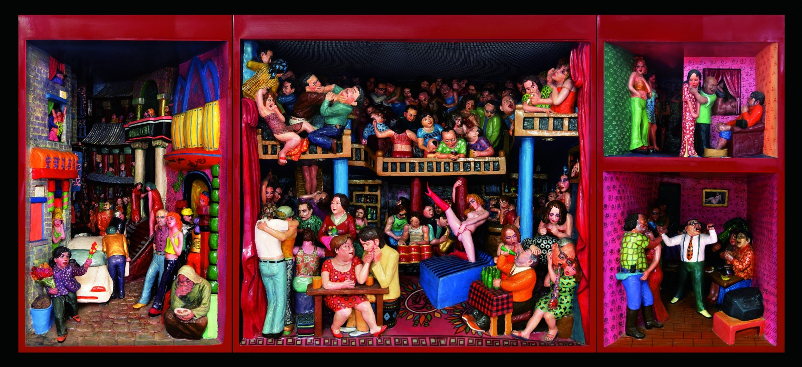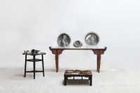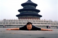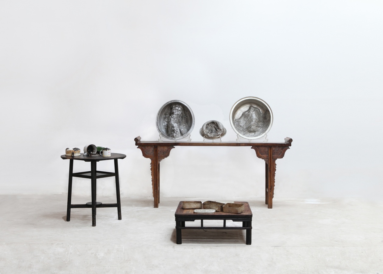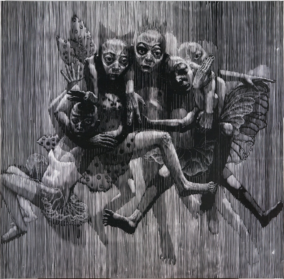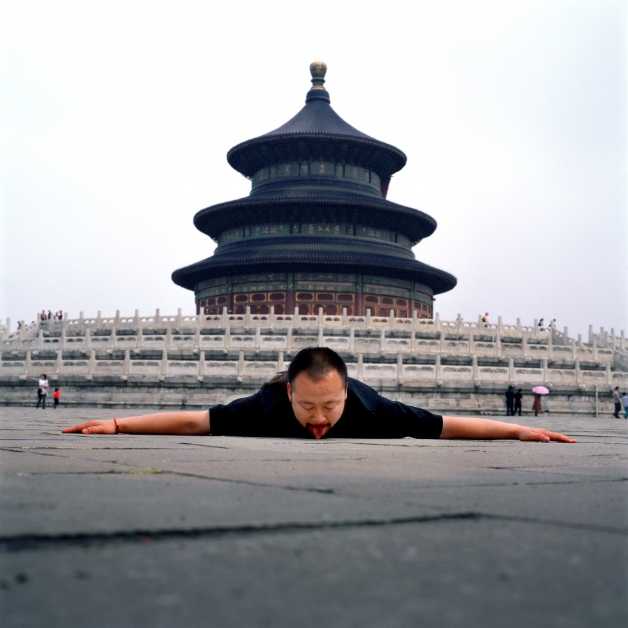 在本次展览中,方力钧带来若干幅黑白木刻作品,这些作品与其油画保有明确的一致性。个体生命的存在状态在画面中凸显,冲击着人们的观看经验。陈庆庆以灵巧著称,具有女性艺术家特有的精致感知力,老旧的木质家具在其手下变得千娇百媚。观者惊讶其想象力之同时,又似乎觉得物体被还原了本来面目。艺术家苍鑫带来了经典的舌尖触地行为摄影。东方人擅长以“直感”代替“分析”,舌尖作为重要传感器与经典建筑结合,为我们重新审视自身文化打开了新窗口。