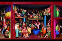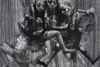 苏新平是少有能在版画与油画领域都有建树的艺术家。《风景》系列是苏新平近年来主要的创作方向,其中蕴含有形到无形的变化过程。多年的版画、油画实践,使其作品更有艺术语言的沉淀之感。艺术家杜大恺是一位颇具修养的长者画家,他的风景作品挥洒于纸本之上,充满凝重、深沉之感,不起眼的景物在其笔下被赋予了内在生命;何汶玦描绘了缅甸佛像景观,首先完整的绘制了画像,再刮扫,最终呈现出动荡美感;姜淼认为“感受是灵魂的语言,是人唯一高贵和纯净的领域,也是幸福的领域。”他的黑白木刻从个人感受出发,以荒诞不经的图像变异和黑白分明的明快刀法表达内心所感,给人强烈印象;蒋华君的油画制造了都市生活的场景,还原出人际关系的本来面目,以发人深省。其作品笔触松动,不拘泥于细节,有一气呵成之感。