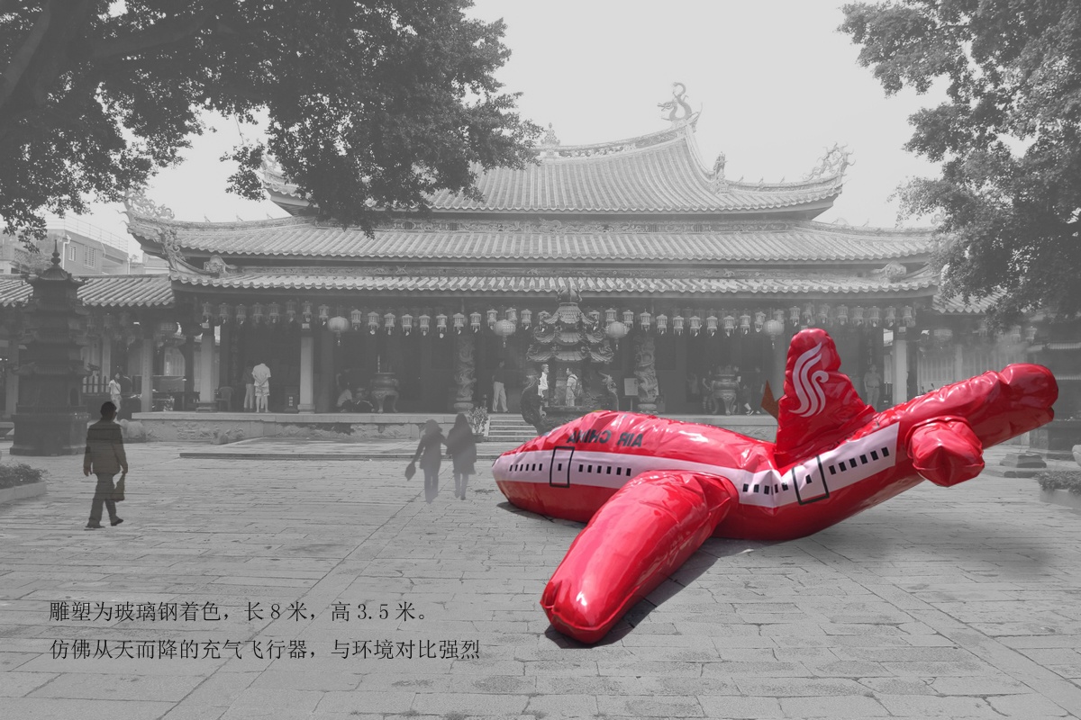 焦兴涛的雕塑十分有趣,一架由玻璃钢着色从天而降的充气飞机,与环境形成强烈对比,从而刺激观众敏感脆弱的神经。杨千的《水珠与城市》使观众游离于真实与虚幻之间。虚幻的是艺术语言制造出的效果,真实则是藏匿于作品中的关于现代都市的答案;钟飙的作品《轮回》、《当下》则让大家看到东方神秘主义在西方传统架上绘画中的可能性,艺术家一贯以图像嫁接的方式进行创作,作品中的矛盾、激烈、创意随处可见;女艺术家吴笛笛的油画常取材于民俗文化,具有明显的东方古典气质。看她的作品就是在欣赏大自然的简洁之美,正如吴笛笛所说,她就是希望以简单的物体说清复杂的问题;艺术家吴少湘善以鲜明的形象表达对生活的理解,《爱的象征》是其中代表。“爱”的心形被空洞的“物质”建构,直观的形象更加令人过目不忘。