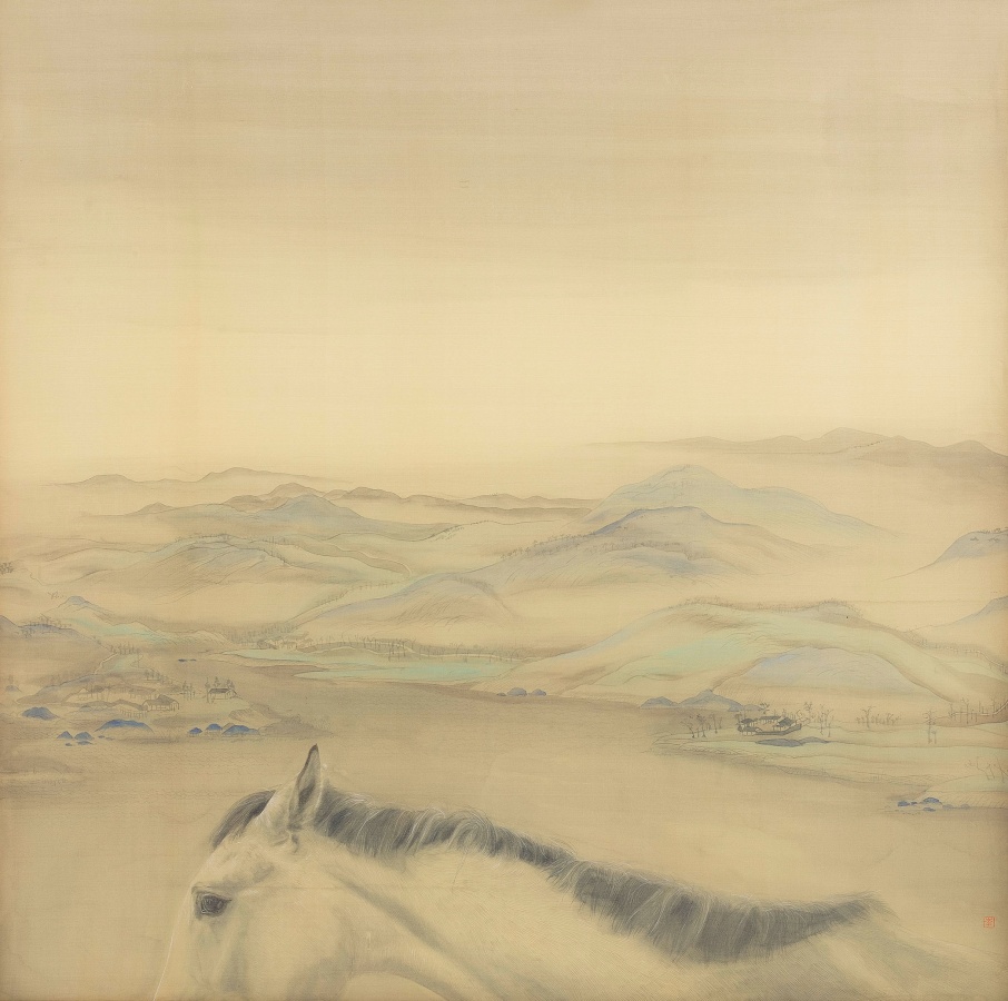 李军、祝铮鸣、李关关,都毕业于中央美术学院。李军,1978年生于山东,学生时代既以生动的水墨“狗托邦”系列成名,现任教于天美。在李军看来,狗从来不单单只是动物,它们和人类一样有自己的情感和命运,有自己的家族、血统、出生、性别、长相、名字和生活,有着自己的喜怒哀乐。《肖像-Dogs》系列中,李军以宠物狗作为画面的载体,依靠水墨自身的特性,用一种别样韵味的水墨语言将他对宠物狗的凝视逐一地展现,建构了一个前所未有的、意蕴丰富的宠物狗世界。《Face To》系列,表现的则是动物间对视的关系,雖然面面相對关系却错综复杂五味杂陈。李军虽然一直在描绘各种“狗”的形象,但何尝不是在力图表述人类生活的现实百态。祝铮鸣,1979年生于浙江,擅画神圣端严的设色工笔半身肖像。祝铮鸣迁想妙得所塑造的人物肖像,既有佛造像的古典风范,又有“哥特式”的宗教精神建构,既是祝铮鸣强化了的自我精神诉求,也体现了她“对画中人,灵性内在的一种专注”。祝铮鸣的每张画都有各自独立的情境,画完一幅,她都会暂告一个段落,再开始新的酝酿。《一须臾》,祝铮鸣想要营造的是“空谷闲云、幽隐自得、清风徐来”的意境,《安晚》则表现了“夜静谧、心无挂碍”的意境。李关关,1982年生于山东,喜欢画马,两次个展都以马为主题,一个是2012年的《以梦为马》,另一个便是2013年在艺凯旋举办的《关驹-李关关个展》,2014年更是在马年和新水墨年的双重利好背景下以别具一格的独特“马一角”造型被业界广泛认识和喜爱。李关关所描绘的是一种走失的状态,这种隐秘、脆弱、散漫的神游状态,通过笔墨在绢上缓缓呈现出的“马”传达出浮躁世风以外的安静情绪。尽管历史上画马的名家不胜枚举,李关关的马,低吟浅唱,喜空好静,含蓄而温润,柔软而强大,自有一种畅游异度空间的纯粹和洒脱气质。