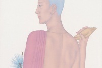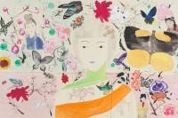 王濛莎,1983年生,年龄最小的参展画家。钱绍武评价说,王濛莎的画“好的不得了,好的没法说。她能把自己的心情愿望淋漓尽致地捧到你面前,她的技巧都从心中流出,就是情感的流动。所以真挚,动人,不可重复,不依傍人。”王濛莎所塑造的画境,密集而蓬勃、微小而温暖、祥和而烂漫,犹如一个当代摩登女性心中与梦里的蓬莱仙境。《雪塔》《玉边》,这组新作是王濛莎对“微物之恋”的呈现;《春深深》,一派欣欣向荣的早春景象,是王濛莎对红尘现实达不到的一个宣泄和释放;《彼岸花》系列,营造出的则是一个玄幻的时空,飘逸,未知,形而上,是对宇宙、未来、生命的不可知与憧憬。