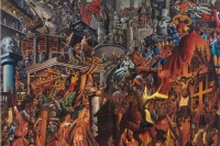 从陈李的作品中能感觉到他想对政治和社会有些发言权,但他的性格和个人生活态度似乎又想远离这种喧嚣的社会。于是通过这些独特的表达方式,在矛盾中纠结的陈李创造了一个自己想象中的王国,将自己建立的“现实”陈列在画布上,并把社会上每一件事物及元素重新定义与组合,构成一个不真实的、拥挤的、被改造了的世界。