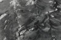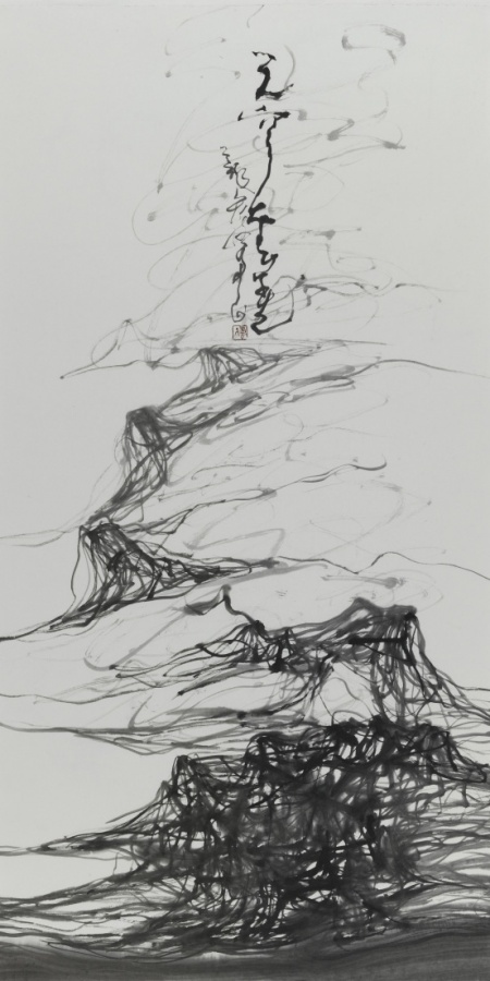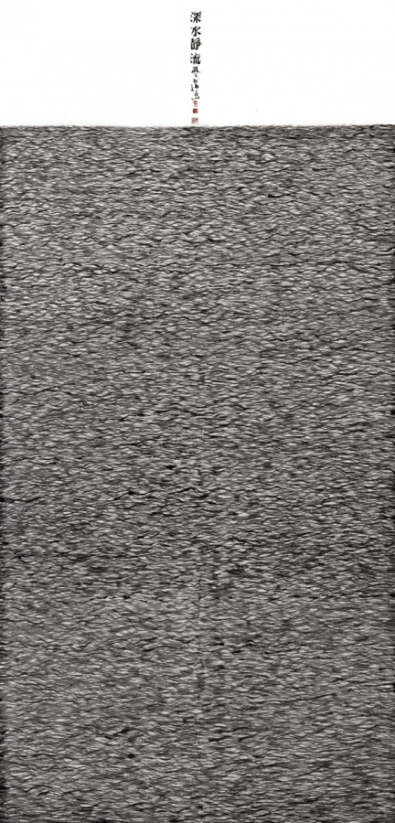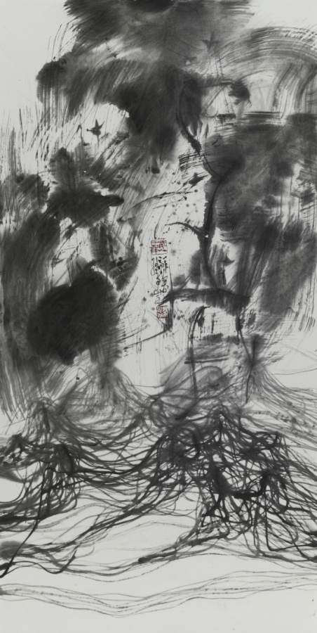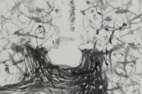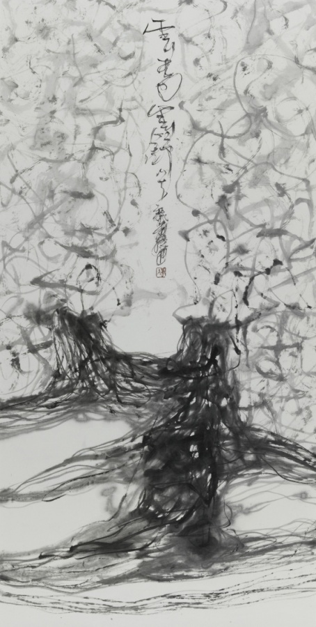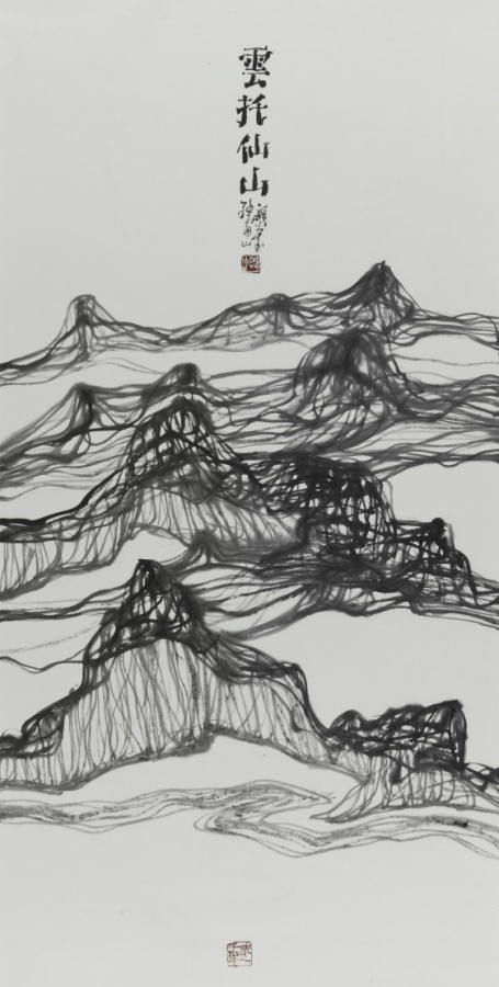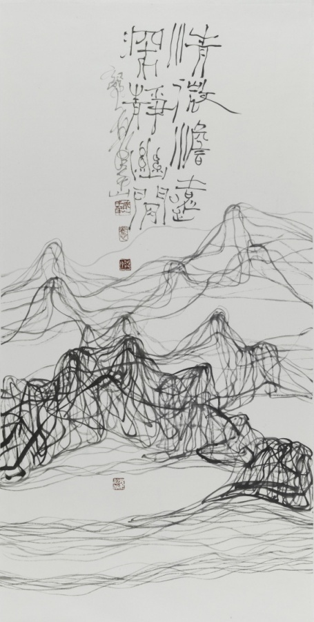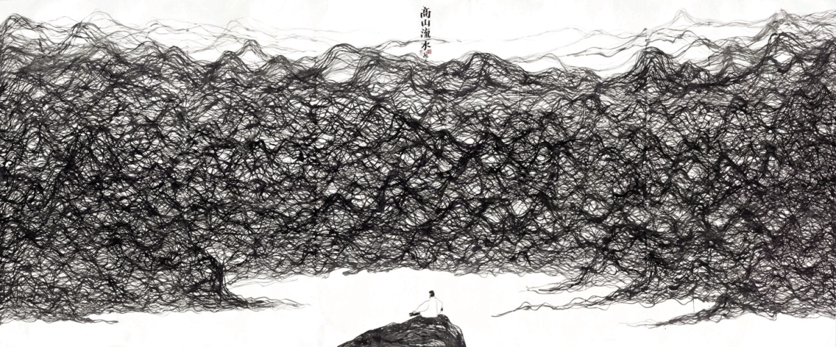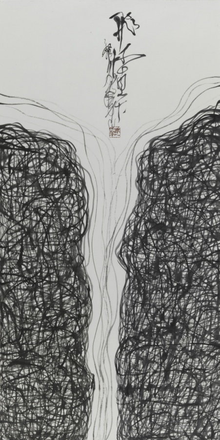 画终南山者,王维范宽以下,代不乏人。王维依佛描写,取其平远。范宽依道绘制,取其自然。今有樊洲,隐居终南二十余载,异军突起,自立门户。樊洲不同于独修隐士,超脱但不偏执,独处而不封闭。日出而作,日落而息,看山读山画山,寻找独特的表现方式。世人画终南,多为写生而流入俗套。樊洲画终南,以书法入画,以琴律入画。琴画交会,书画贯通,山人艺三者浑然一体。樊洲以为画家能稍逾前人,便是成就。当代山水画家每推举前辈黄宾虹,洲亦心向往之。黄氏喜作小幅,宜把玩而不宜远看。樊洲作画多为鸿篇巨帙,近取势而远取态,其势俱在运气行笔之间,或如高山坠石,或如云横九派,或如天籁共鸣。