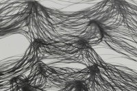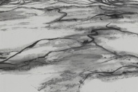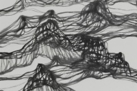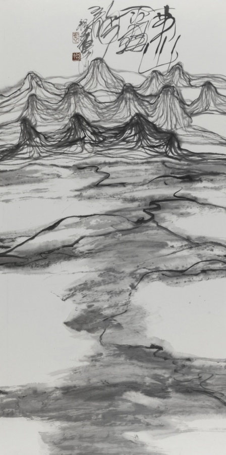 樊洲的乐律山水,用波浪状的行云流水描构成画面,单纯,流畅,舒展,大气,视觉与通感具有穿透力。这一画风,受惠于他早年的艺术理想,即立志革新中国画。二十世纪八十年代,在现代主义熏陶下,年轻的樊洲对水墨画的变革,曾经作过不懈的努力。尽管那些带有西洋意味的画法早已被他放弃,但对于他探求新型的水墨山水画却不无意义,其意义在于对现成画风的不满和对新的表现方式的渴望。