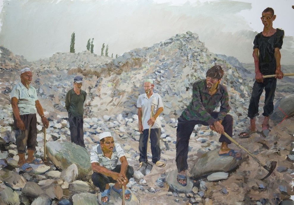 2012年6月22日,刘小东和一支小团队来到新疆,开始了为期两个月的记录采玉工生活的计划“刘小东在和田”。这一次,刘小东再次延续了他逐步建立的现场绘画方式,即从《三峡系列》(2004-2005)起的创作所展现的独特手法。他在帐篷里建立了临时工作室,使用素描、日记、油画和摄影等手法,展开这一漫长的项目。同时,还有一支电影团队一直在记录这一创作过程。