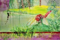 赵瑞鸣的《蜻蜓系列》通过对童年记忆场景的捕捉,以“蜻蜓”为主要的构图元素,用简明、清透的色彩来表现一种多样、朦胧的愉悦感。多年的绘画经验使得她形成了自己特有的表现形式,点触自由,信手拈来。