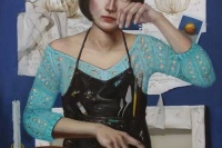 曲盈认为“审美和怪癖一样难以改变”所以她的作品,无论从内容还是形式,都凝聚着她独特的审美意趣。她喜欢用写实的手法清晰的表述无以言表的意识层面,用“蜗牛”来表达软体动物与少女的暧昧情愫,用“皮鞋”暗自提醒女性这一群体在社会关系中的受控意识。