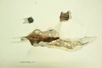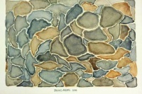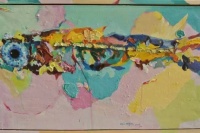 当几个生命并置在一起时会反馈给我们这样的感触:这几个具有独特的生命特征的个体根本无法避免相同的生命归宿却只能顺从,这让我们感到很寂落。 《鱼》系列通过组图对于“鱼”这一元素用明快又不失厚重的色块构图。用笔大胆、畅快又不失掌控。杜尚劼用“鱼”这一原始符号的表现形式对于生命本源进行一种追问,我们是谁?我们从哪里来?我们到哪里去?