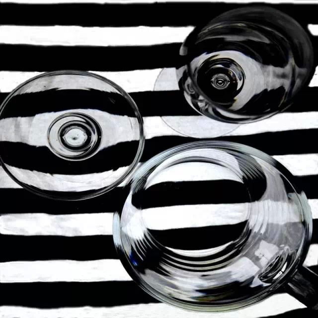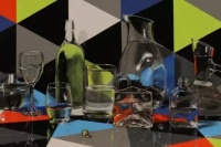 范晨生的《纯粹》系列是采用超写实的手法来创作的油画静物。手法细腻精准又不失整体风貌。用极为具象的静物来表现内涵丰富的主题。彩色的三角几何图形象征着现代斑斓却又多变的社会。高低不同,大小不一,各式各样的玻璃器皿里装着不同容量的水,就好像被投入社会中的人一样,经过时间的洗礼变得形形色色。