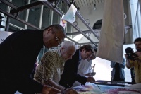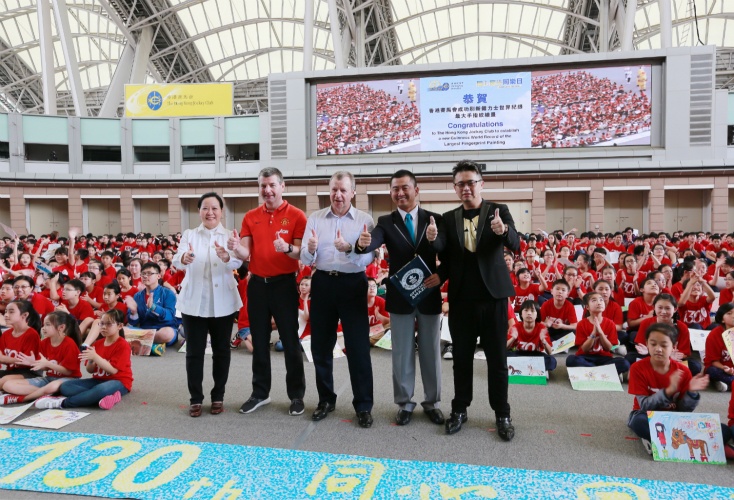 《手指纹“仁马”长卷》与30幅学生绘画作品,千人“画仁马”社会艺术行为作品,由国际跨界艺术家Simon.Ma马兴文联合香港赛马会,为纪念香港赛马会130 周年,与香港约1200名中小学生历时3个小时共同完成,绘画作品体量全长逾238米、总面积逾150平方米,打破《吉尼斯世界纪录大全》(Guinness World Records),成为“全球最大的手指纹绘画”。艺术家与香港赛马会合作也是源于它“勇于尝试、敢于创新”的精神与其积极投身于慈善活动,每年的累积慈善善款甚至达到人民币200亿。