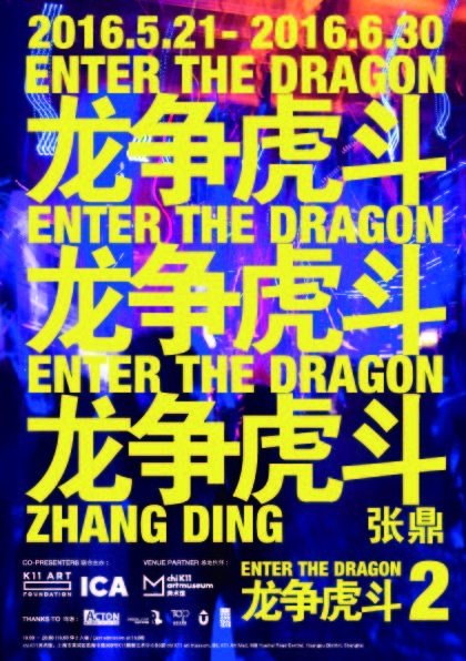 K11 Art Foundation和伦敦当代艺术学院(ICA)联合举办的“张鼎:龙争虎斗II”,是艺术家同名作品的第二步曲,由ICA策展人Matt Williams 策展。作品的首步曲于2015年10月的13个晚上于在ICA的剧院中进行。剧院空间被改装成一个糅合了的士高舞台的科幻感与超级俱乐部的未来风格的庞大装置。空间的两边设置了两个舞台,以旋转的玻璃镜子产生迷幻的镜像效果。每个演出的晚上,不同曲风、全新组合的乐手都会在舞台上即兴演奏音乐。