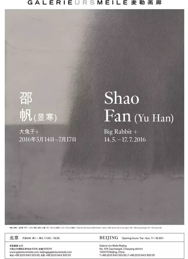 Galerie Urs Meile Beijing is honored to announce Shao Fan (Yu Han)’s exhibition Big Rabbit +. This exhibition will concentrate on the artist’s intriguing, traditional ink explorations of animal portraits with contemporary sense. Since his childhood, Shao Fan has been immersed in traditional Chinese culture and has searched through its long history for things that suit his contemporary style. He easily makes use of traditional ink, oil paint, sculpture, design, architechture, and even gardening, among other forms of media in his practice and artistic language. Shao Fan’s works are restrained, full of tension and profound cultural features. With his usual careful perspective, Shao Fan expresses his attitude toward everything in today’s world.
