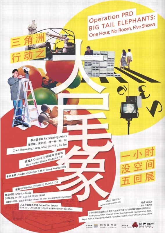 “三角洲行动之大尾象:一小时,没空间,五回展”是对大尾象主要作品、展览活动和现存文献的第一次完整回顾、整理和重现。“一小时”引自梁钜辉1996年在广州某建筑工地电梯上实施的行为“游戏一小时”;“没空间”则对应大尾象1994年在广州三育路14号组织的第四回展, 展览标题“没有空间”来自侯瀚如的建议, “五回展”强调大尾象1991-1996年间在不同类型的非艺术空间中组织的五次展览,这五回展构成了本次时代美术馆展览的中心和基础。大尾象在此期间的展览和活动,构成了种种一次性的时空关系。这些稍纵即逝的事件,打破了艺术和非艺术、精英主义与街头文化的排他秩序,为解读中国1990年代后去意识形态化的当代艺术及其社会政治语境,提供了新的可能性和入口。