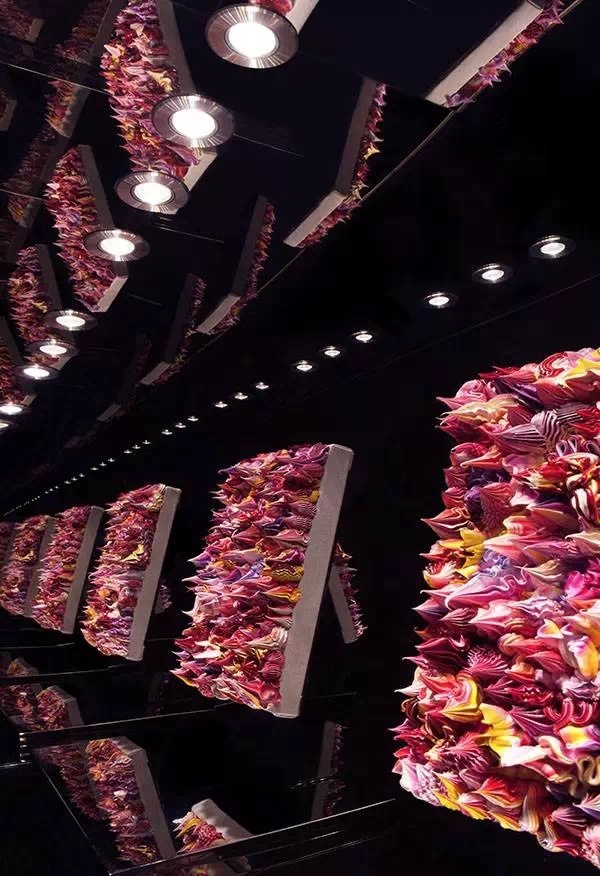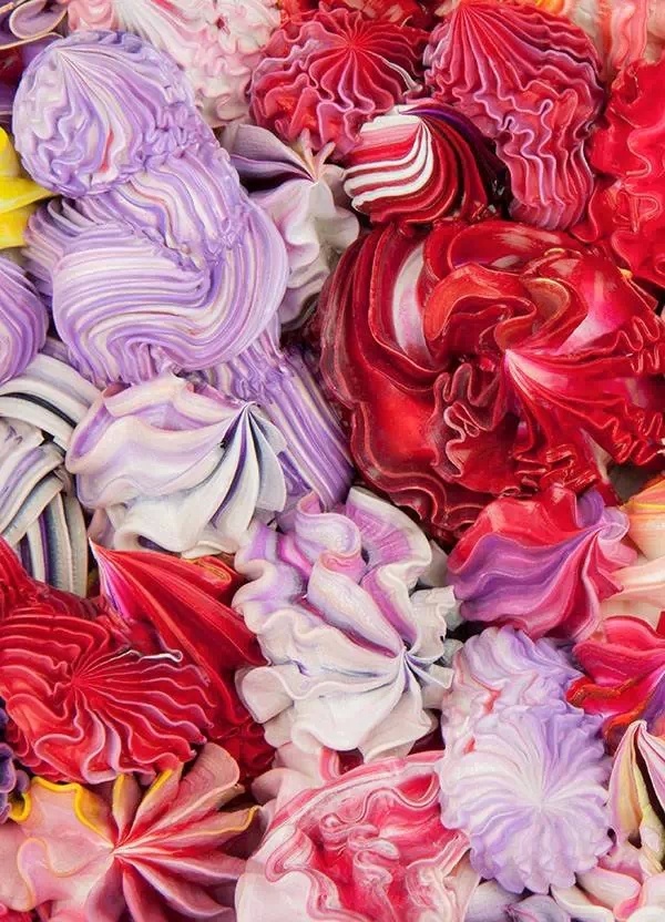 《天下》绘画是艺术家徐震最著名的绘画系列之一,曾作为纽约军械库艺博会的重点作品备受推崇。犹似新鲜蛋糕上一层浓厚的裱花奶油,令人口舌生津的食物色泽与奶油花形搅拌融合在巴洛克风格的雕花丛林里,呈现出一种极端密集与狂欢。愉悦、疯狂的感官主义作品,在相同性质的现实中,构成了一种异常奇妙的刺激感受。