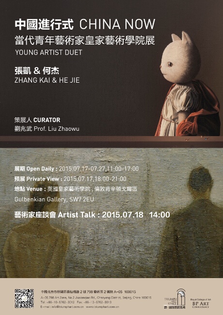 这次展览展出的两位艺术家,何杰和张凯两位艺术家来自不同的教育背景,绘画风格也是各有千秋,但相同的是,他们的创作强调个人色彩以及国际化的艺术语言:鲜活、主动地表达着对于生活周遭的现状,并对于自身不断不停的反省与思索。何杰的画总与记忆尤其对历史中公共事件的记忆有关,并通过对记忆形象的表达中,寻找这种形象与现实之间的隐喻。他把时代的瞬间印记悄然地凝固下来,营造了一个超越物质概念的新的精神世界。在绘画的本体角度看何杰也抛弃了绘画本体价值意义,努力地建构一个新的绘画价值观。