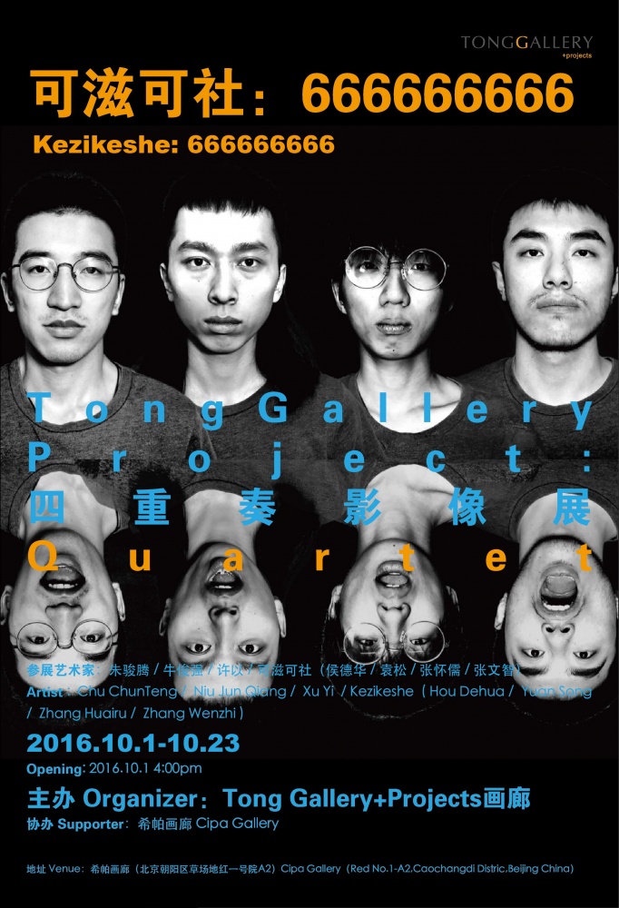 Tong Gallery+Projects画廊感谢靳宏伟先生提供草场地红一号院的Cipa Gallery来呈现2016年Tong Gallery+Projects画廊的重要项目“Tong Gallery Project: Quartet 四重奏影像展”。展览将于2016年10月1日开始,截至到10月23日。