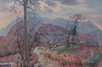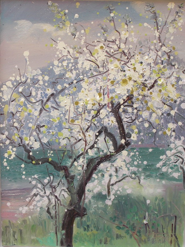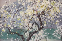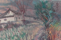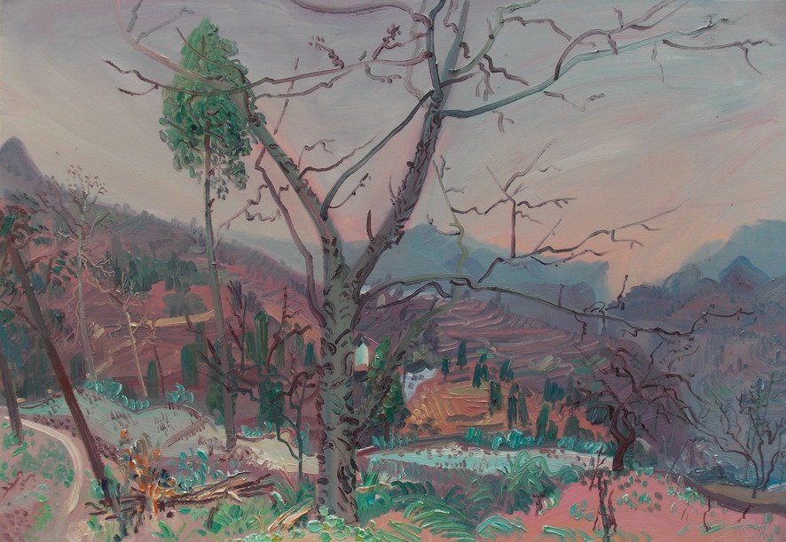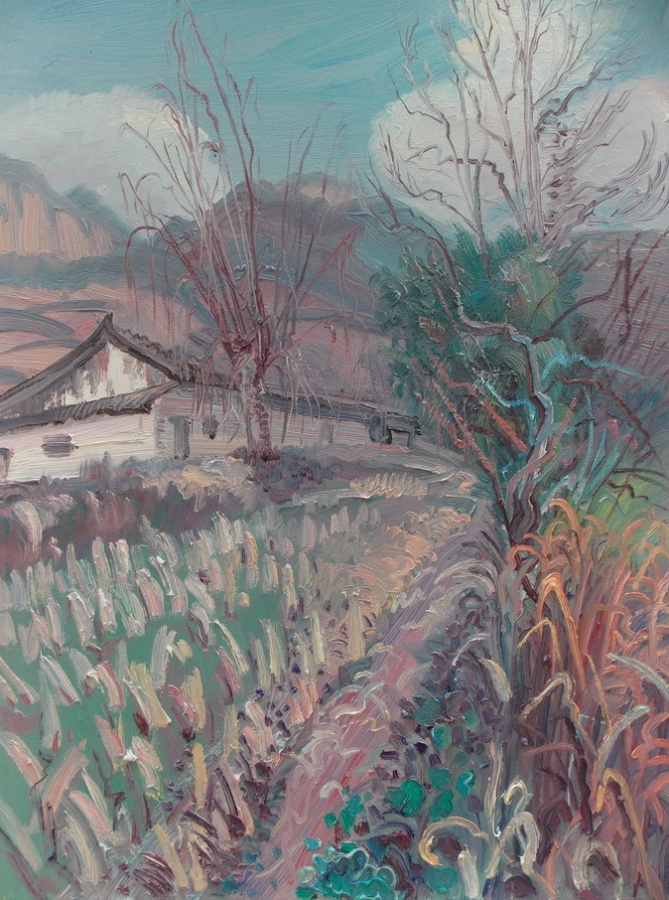 在军政的写生作品中,冷色的运用使画面在色距区域形成了微妙的色彩流动,通过对于微妙的明度值变化的把握,使得造型在微小的明度差之中体现出细腻的肌理变化,种种不期而遇的微妙之感被完美地呈现,从而使得自然之物在心灵的游荡之中明净空雅。军政对于色彩细腻的感知无疑使其笔下的风景具有了内在的个人情绪,也许这便是艺术家内心深处所追寻的精神世界。