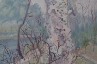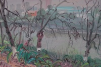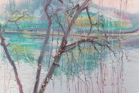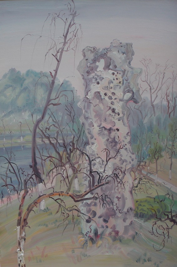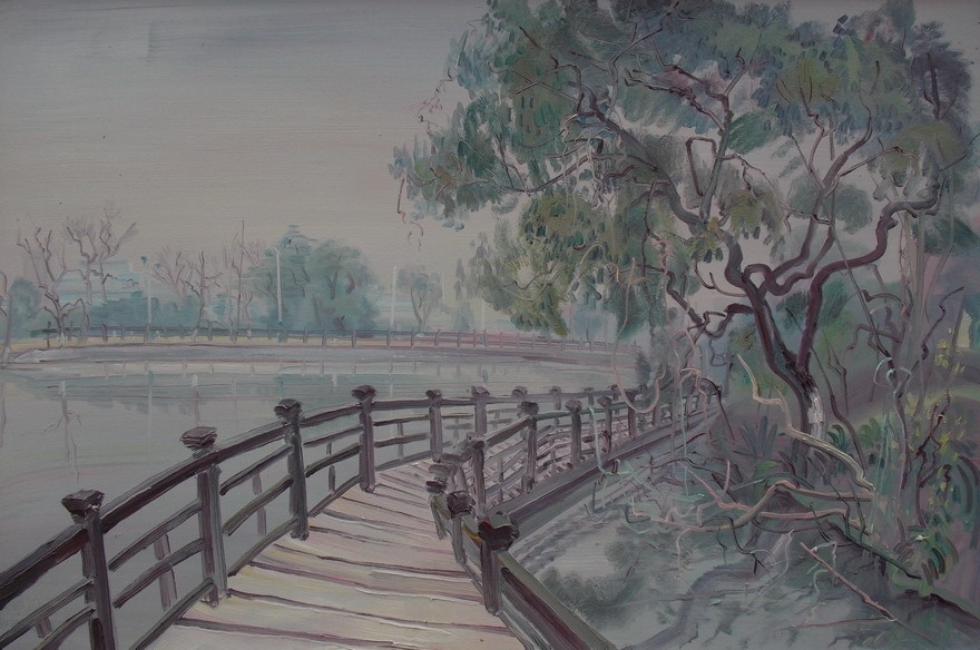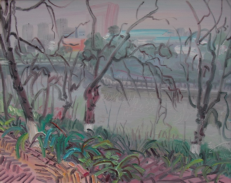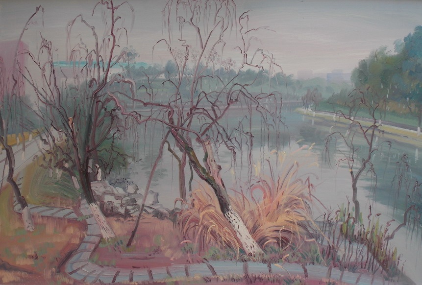 写生,对于艺术家而言,如往昔时光中,诗人在山水中心境的畅游,军政的作品用朦胧的灰色抒写着一首首空静冥想之诗,面对着分外妖娆的都市生活,自然的隐者用灵动的画笔追溯着原初生命的隐秘与恬静,回归到生命的初始,这一首首视觉化的诗歌向我们诉说着艺术家悠荡于自然中的灵魂。