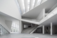 整个改造与建设工程历时3年有余,工程于2015年4月完工。美术馆建筑面积约3.5万平方米,展馆面积约8200平方米,展馆主体结构由多个不规则盒子构成,既呈现出立体抽象的现代艺术形态,又彰显了视觉张力和丰富想象的自由精神。