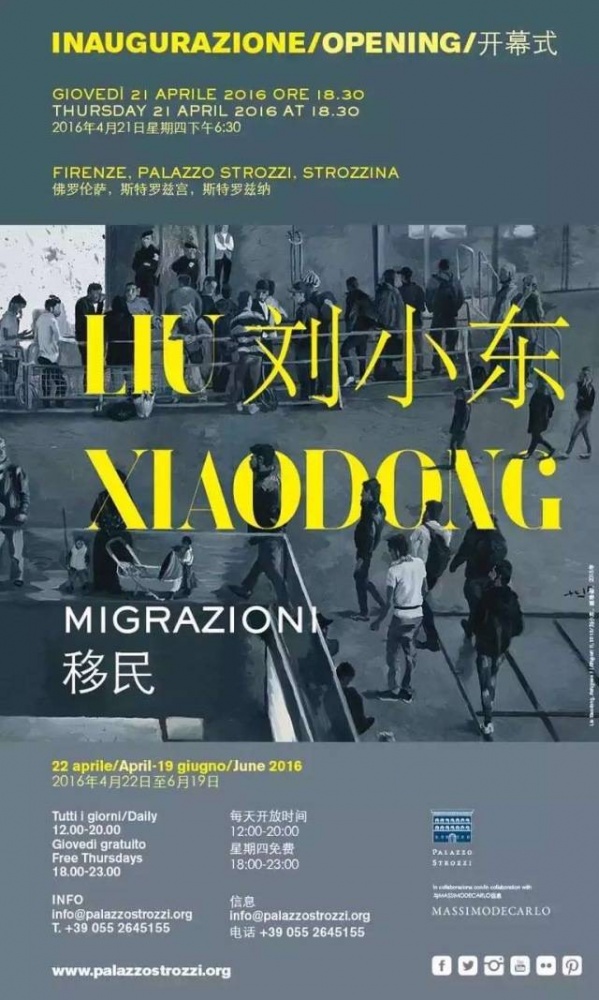 由Fondazione Palazzo Strozzi策画,与MDC画廊合作的刘小东展览“Migrations” 即将在意大利的佛罗伦斯(Florence)Palazzo Strozzi开幕。展览将展出刘小东的182件摄影记录及手稿、10幅画作、1支记录片,主要反映了艺术家在2015年春天至秋天期间在意大利托斯卡纳(Tuscany)和普拉托(Prato)与当地人和从中国移民到当地的居民之交流经历。刘小东以摄影作为记录工具,记下了对周遭的感知及观察,再以人性化的笔触将艺术技巧与文化现实连接。