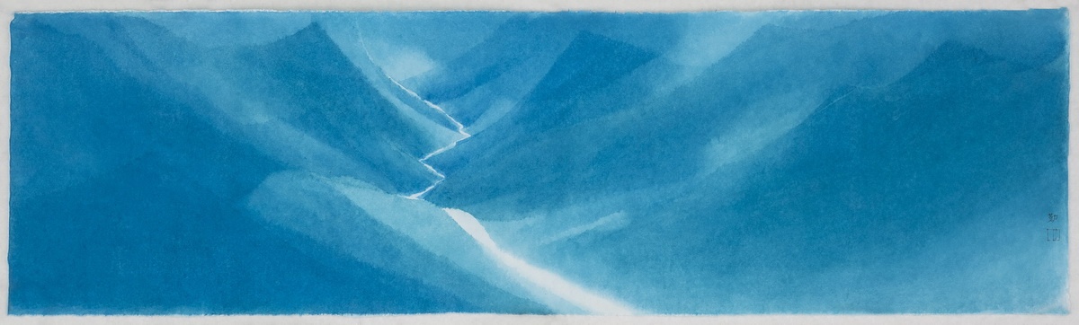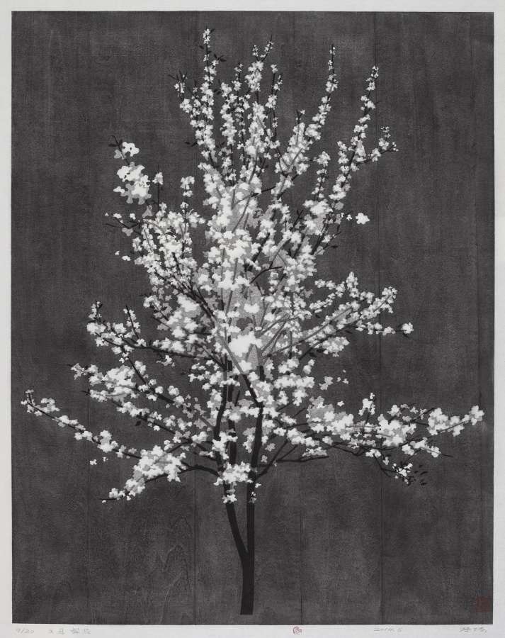 及至后来成品挂出,细细看他的多层色板,精准套印,一笔一刀、一丝一毫的手工刻制,对水印技术出神入化的控制,形与形之间的律动流转,线与线之间的围合对冲,精确分割出敏感的空间。条理清晰,层次分明地营造出朦胧虚幻,飘忽不定的意象......,真正是计算出来的美丽。