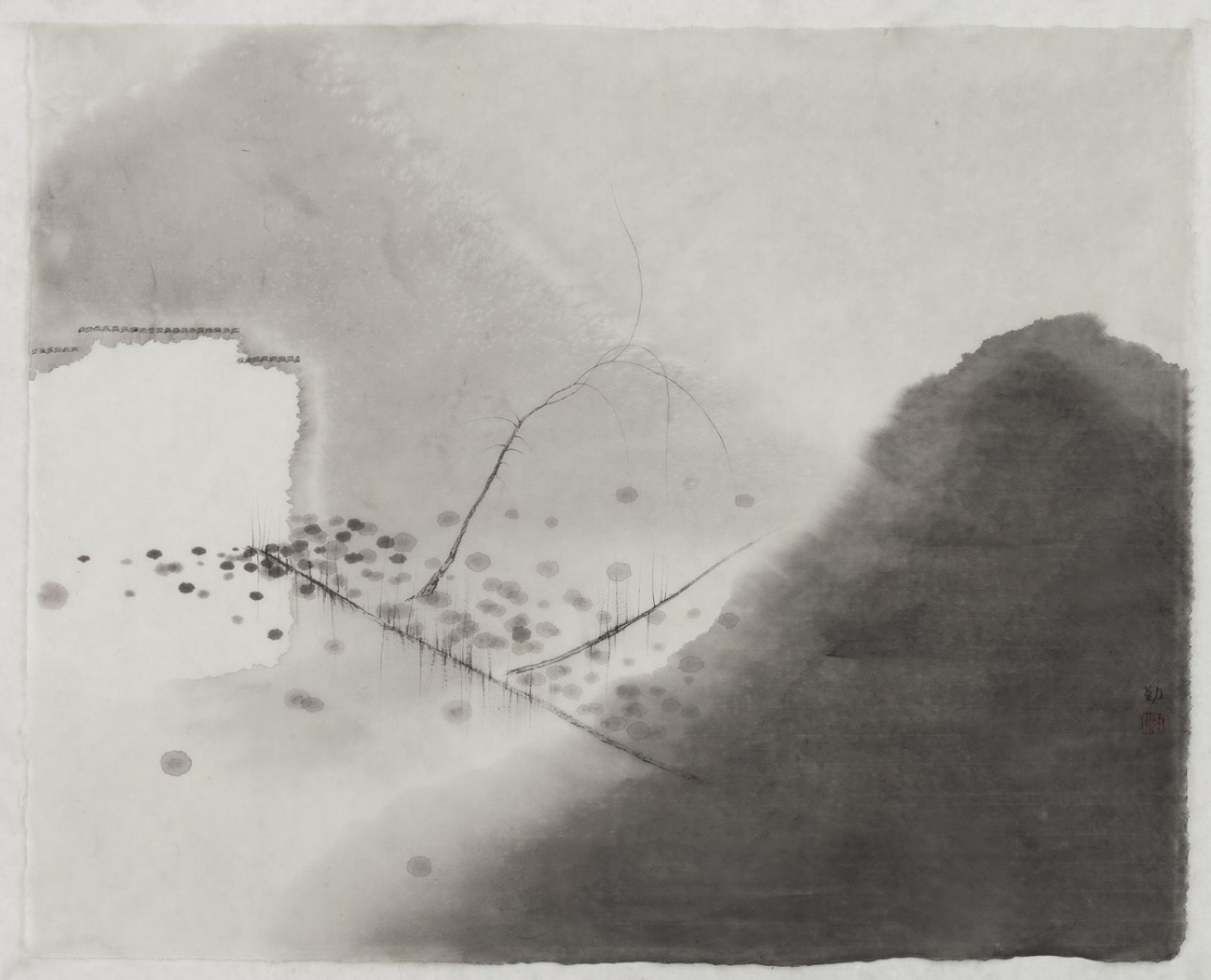 据说有观者委婉指出此画“没有激情。”我知道这又是“计算与控制”惹的祸。一面巨大的水墙,兀自堵立。没有中心,没有边际,不见高潮,更无浪涛。通篇是黑色波纹的荡漾,一种逝者如斯的无情。
